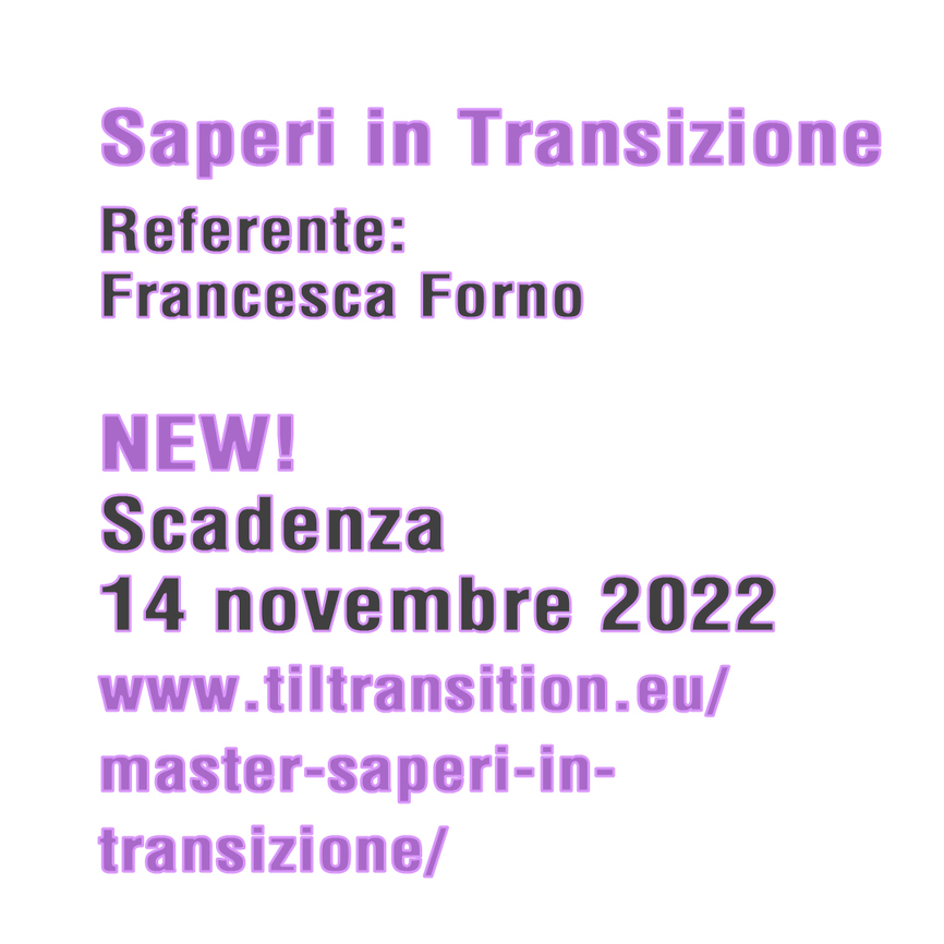 Con uno sguardo alla sostenibilità, “Saperi in Transizione. Strumenti e pratiche per una cittadinanza ecologica e globale“ rappresenta la proposta più avanzata in Italia – e tra le prime in Europa – di Master rivolto a chi è attivo nei territori, associazioni, pubbliche amministrazioni, imprese sociali, cooperative, aziende responsabili, consumo critico, economia solidale.