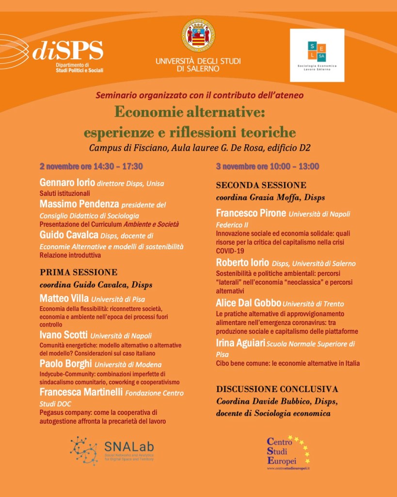 - Economie alternative: esperienze e riflessioni teoriche – Università di Salerno, DISPS, 2-3 novembre 2022