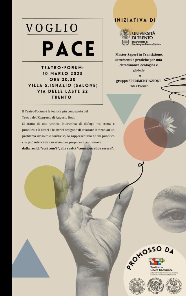 | Ore 20,30: Spettacolo serale di teatro forum, aperto a tutta la città: “VOGLIO PACE”, a cura di Giolli Coop | |||